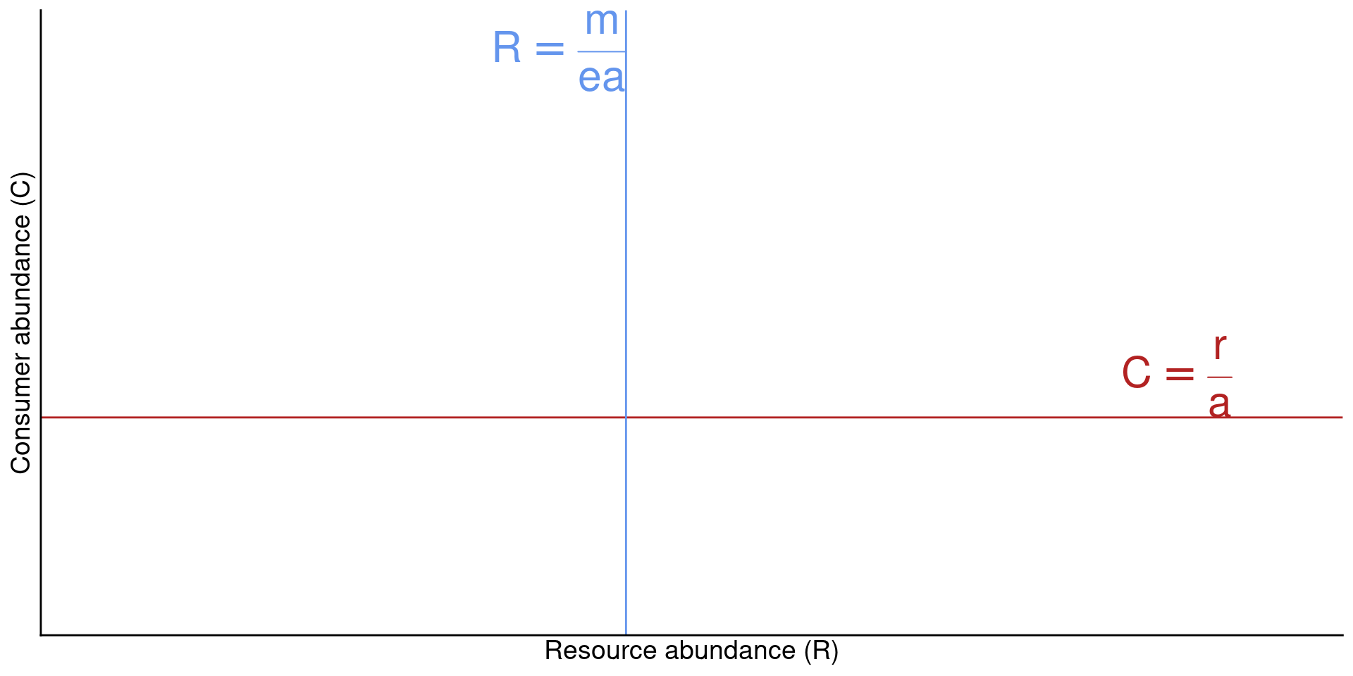 Interpration: There is a set abundance of the resource \(R\) that would cause the consumer to reach equilibrium