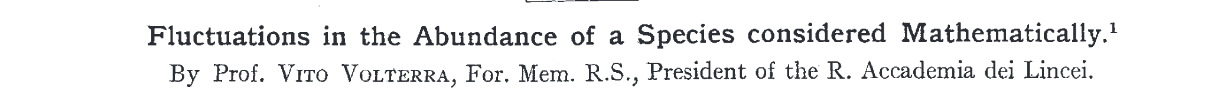 In 1926-27, Volterra and Lotka developed the model of consumer–resource dynamics